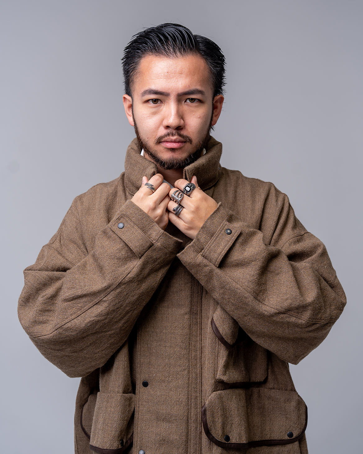 Kaptain Sunshine has once again blown us away with this beautiful hunter jacket. The way it drapes and flows on an individual is truly beautiful and will have people endlessly complimenting your style. It features a roll in Hood, leather back pleats, leather trim and a relaxed fitting.